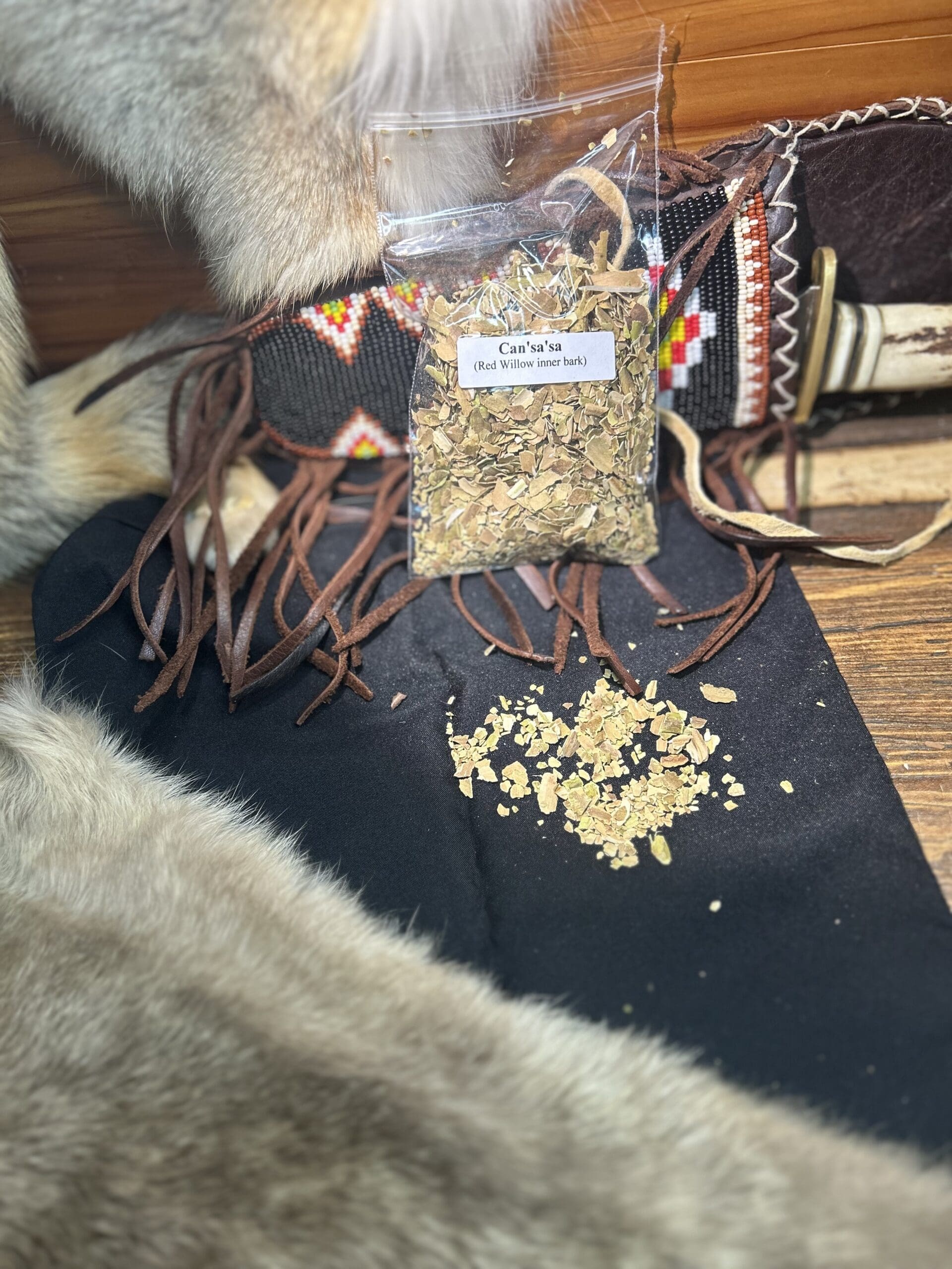 Hand scraped inner bark of red willow bush 1 ounce package. Put in your prayer pipe.